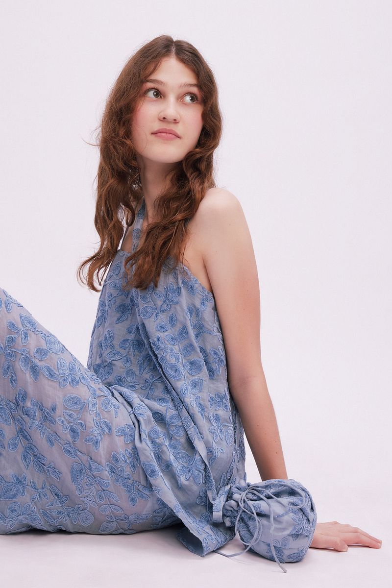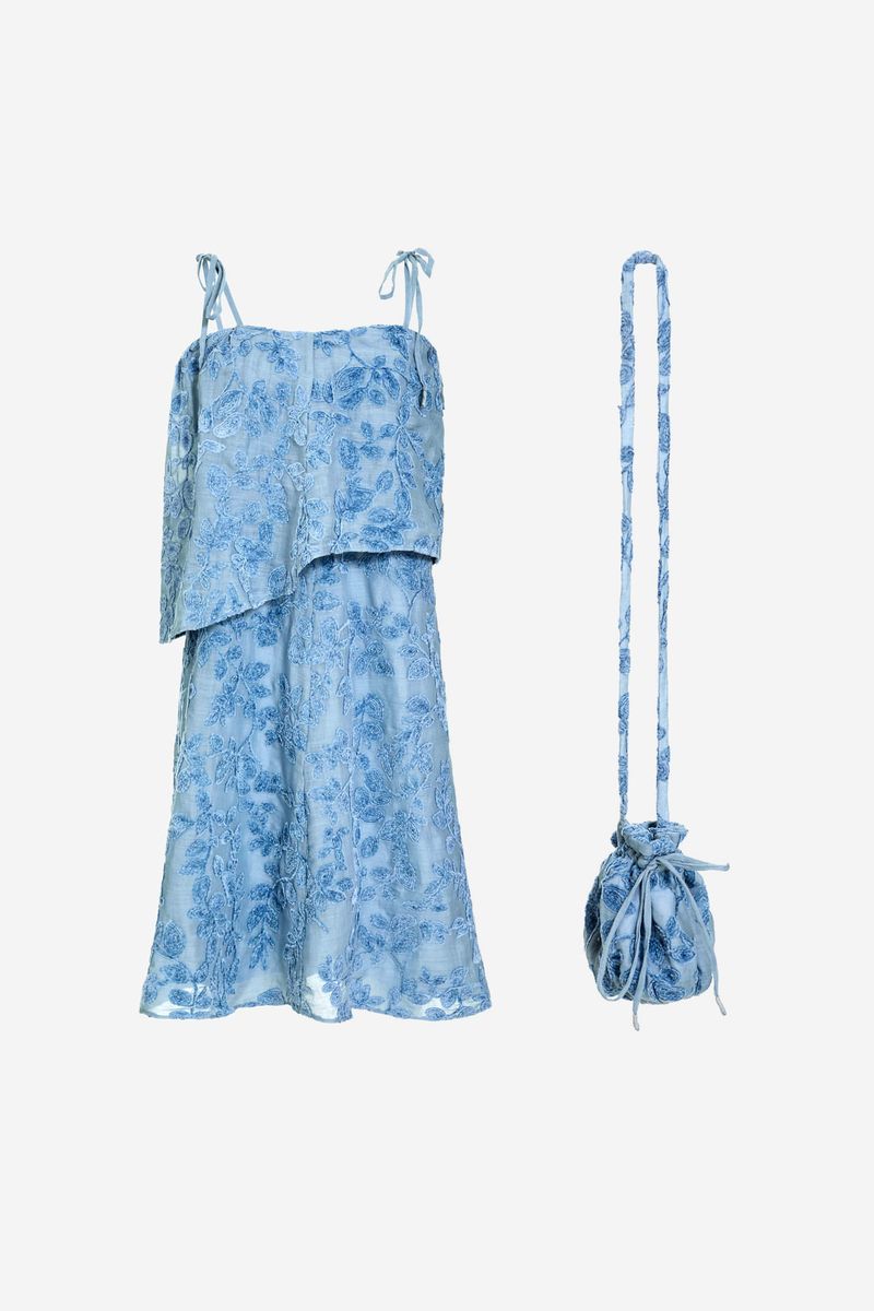 O vestido Elara mini CRIS BARROS é elegante e fashionista. De Libélula, voil 100% linho, levemente transparente com fio de chenille feito a partir de lã, formando desenhos de delicados buquês de folhagens. Possui shape reto, decote reto com babado em sobreposição do busto até o quadril, dando um efeito alongado a peça, alças finas para amaração, saia com caimento reto e fechamento por zíper invisível posterior. Acompanha bolsa do mesmo tecido.