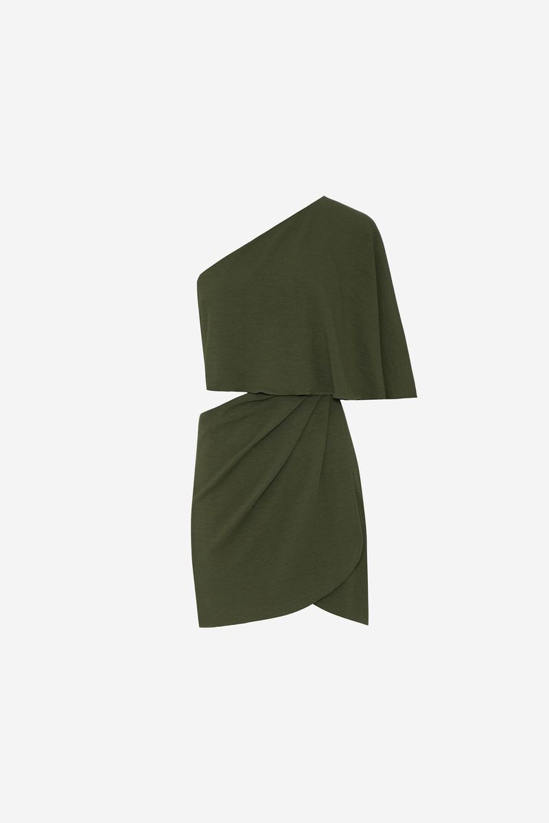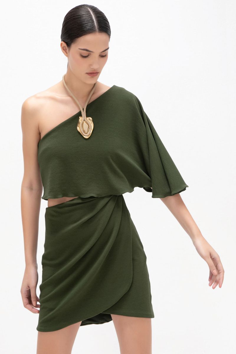 O vestido Fabiola CRIS BARROS é estiloso e marcante. De Marjorelle, nossa clássica malha creponada de toque macio que garante muito conforto e sofisticação, feito com fibra de origem natural que possui a certificação LENZING ECOVERO garantindo uma produção com baixos impactos ambientais. Possui shape justo, decote um ombro só com modelagem estilo "capa", recorte na cintura, saia transpassada com drapeados, comprimento curto e fechamento por zíper invisível lateral.