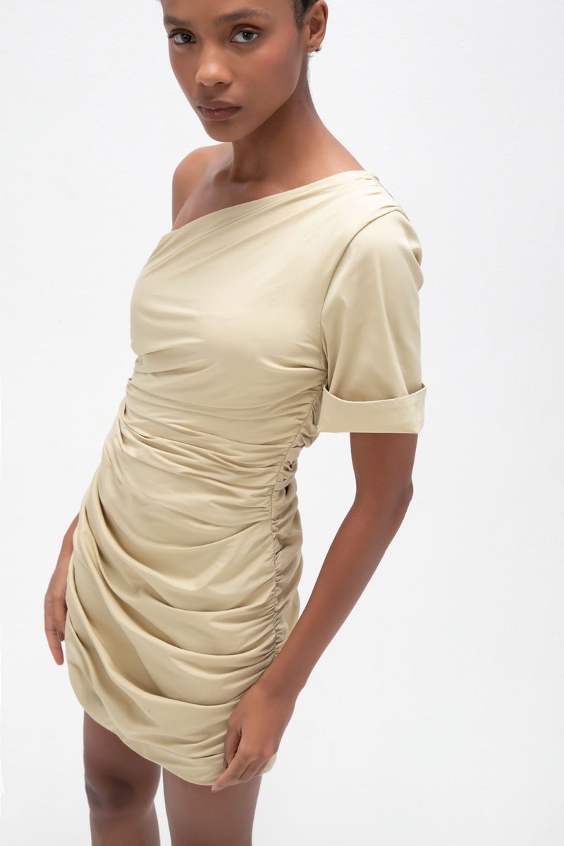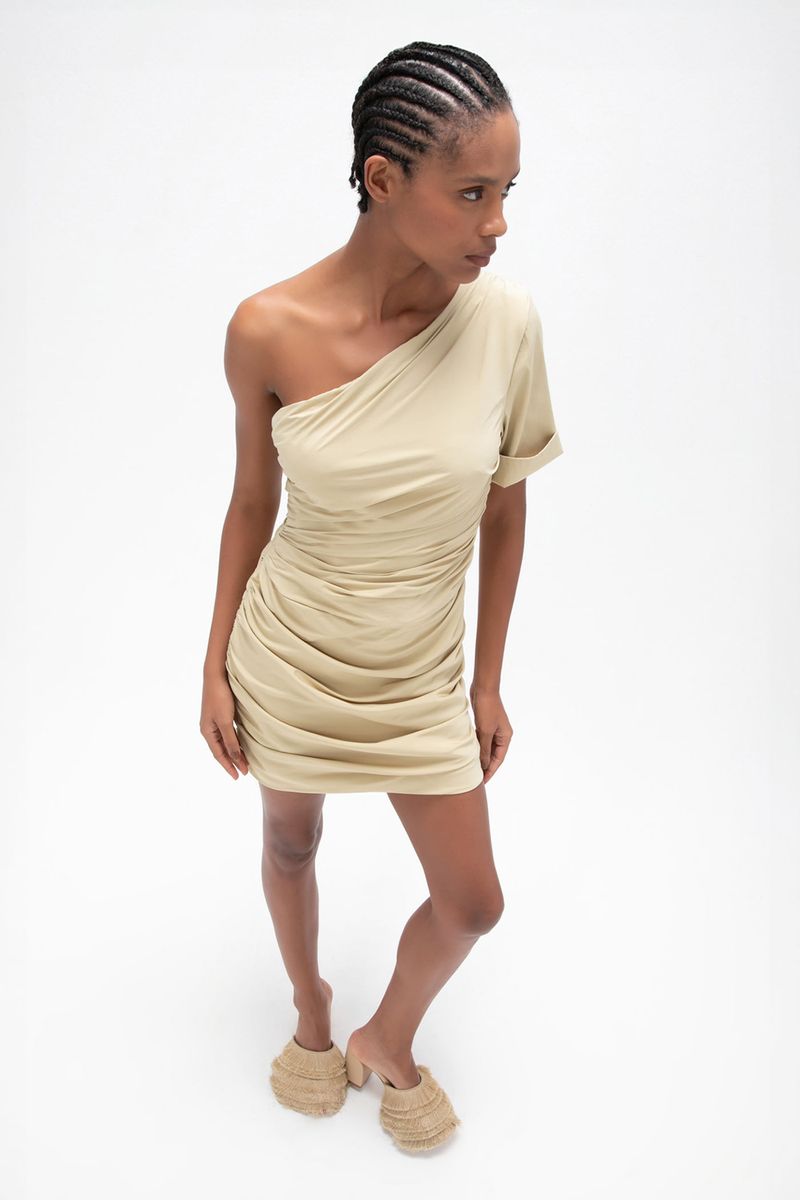 O vestido Floriana CRIS BARROS é escultural. De Eugênia, tecido misto, confortável com caimento leve e fluido, feito fibra de origem renovável que possui a certificação TENCEL MODAL, garantindo manejo florestal sustentável e uma produção ecoeficiente. vestido de tecido eugênia. Possui shape justo com um ombro só, manga média enrolada, corpo todo drapeado, saia curta e fechamento lateral por zíper invisível.