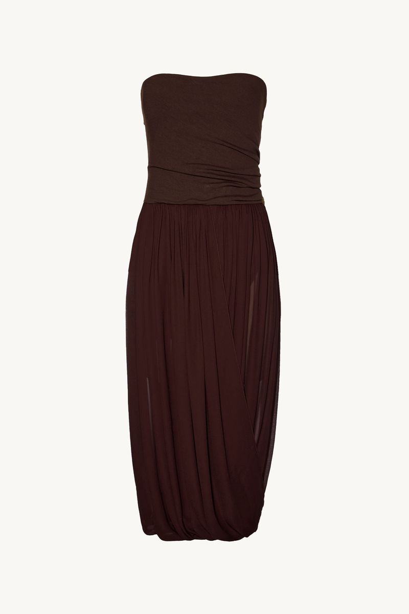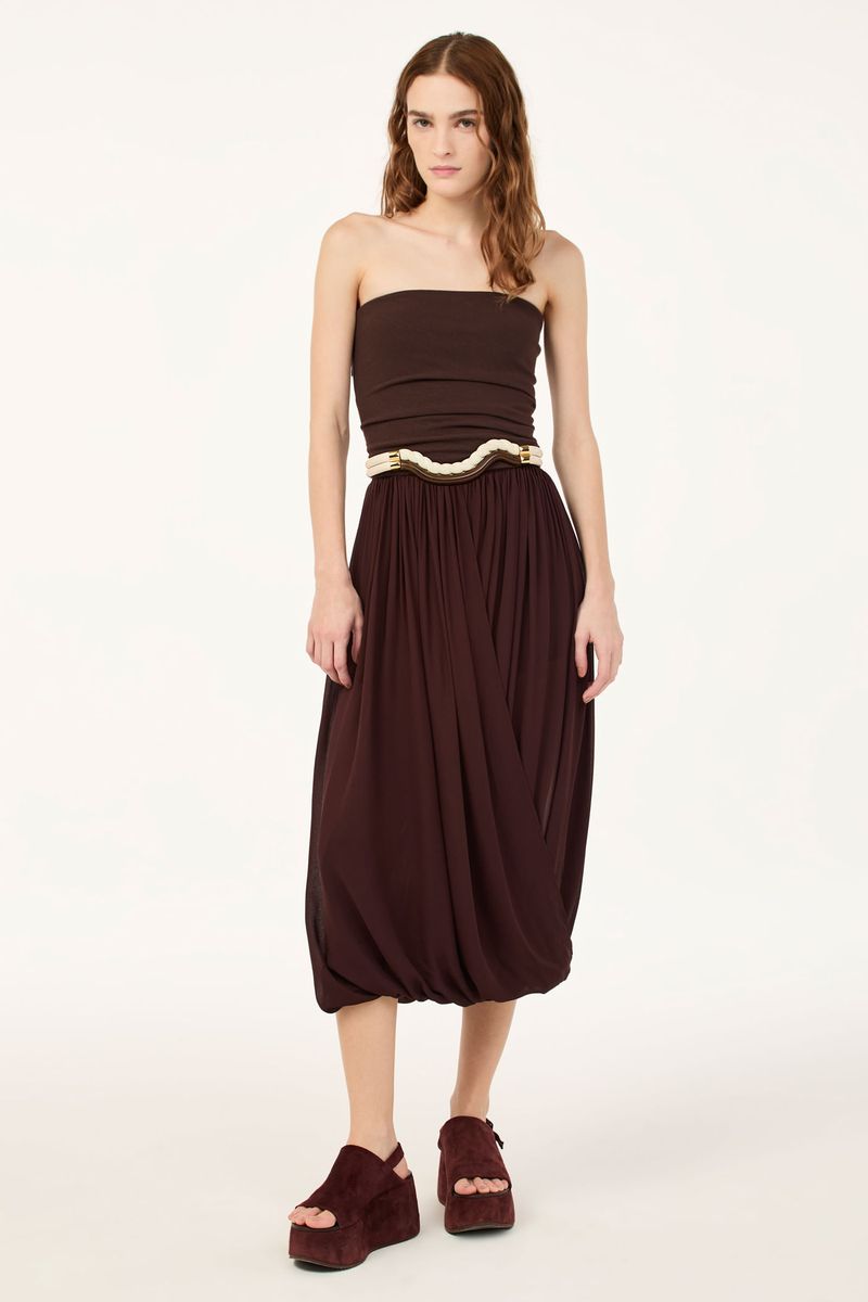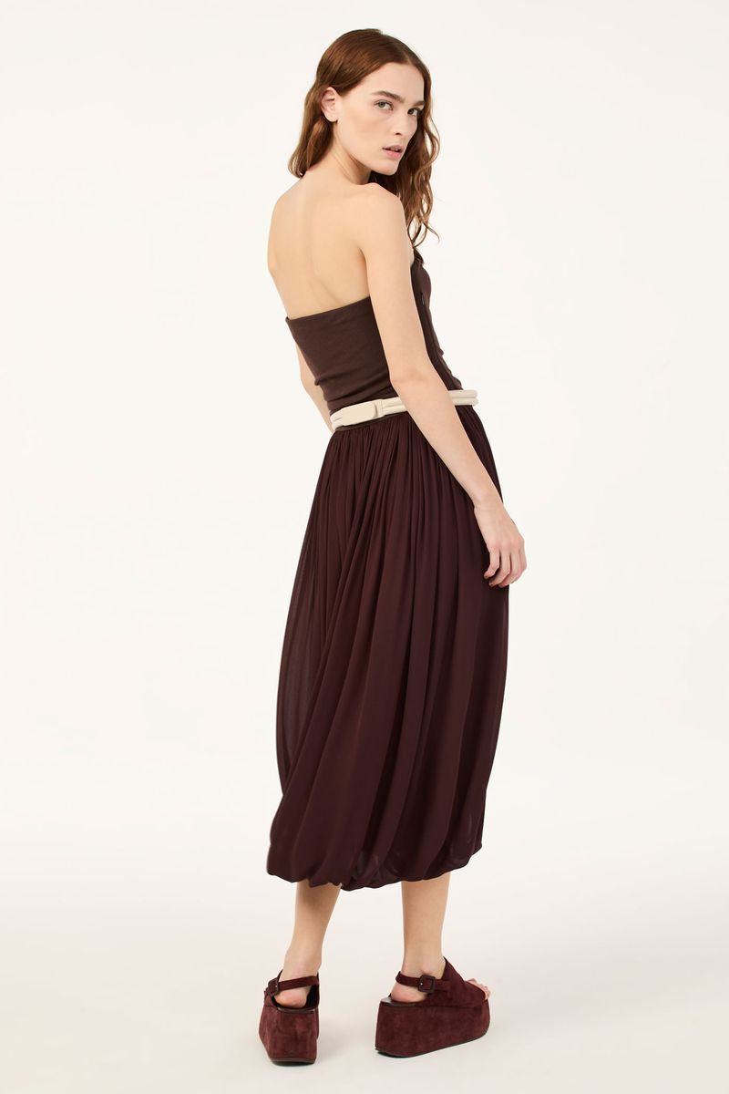 O vestido Hortensia CRIS BARROS é chique e cool. De Virgo, nossa viscose creponada, fluida e com leve transparência. Possui shape justo, corpo de Marjorelle, sem alças, decote reto, recorte na região da cintura com leve franzido lateral e saia midi degagê de Virgo.