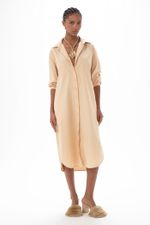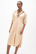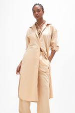 O vestido Indore CRIS BARROS é fashionista e versátil. De Lulu, tecido de algodão misto com liocel, possui leveza, brilho e caimento perfeito. Possui shape chemise, mangas longas, botões forrados, bolsos laterais funcionais e detalhe de aviamento bijoux de resina no inicio da fenda lateral. Pode ser usado como vestido ou com calça fazendo as vezes de um maxi top.