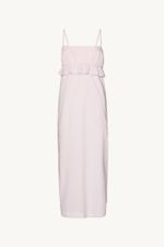 O vestido Isabel CRIS BARROS é chique e delicado. De Bartô, algodão 100%, possui fibra natural e biodegradável, tratado com produtos certificados OEKO-TEX , inofensivos para as pessoas e o meio ambiente. Possui decote reto, busto franzido com mini balone, alças finas e saia midi evasê.