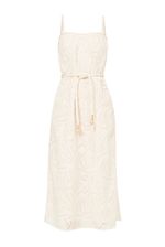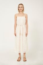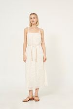 Vestido midi em algodão com tecido texturizado.