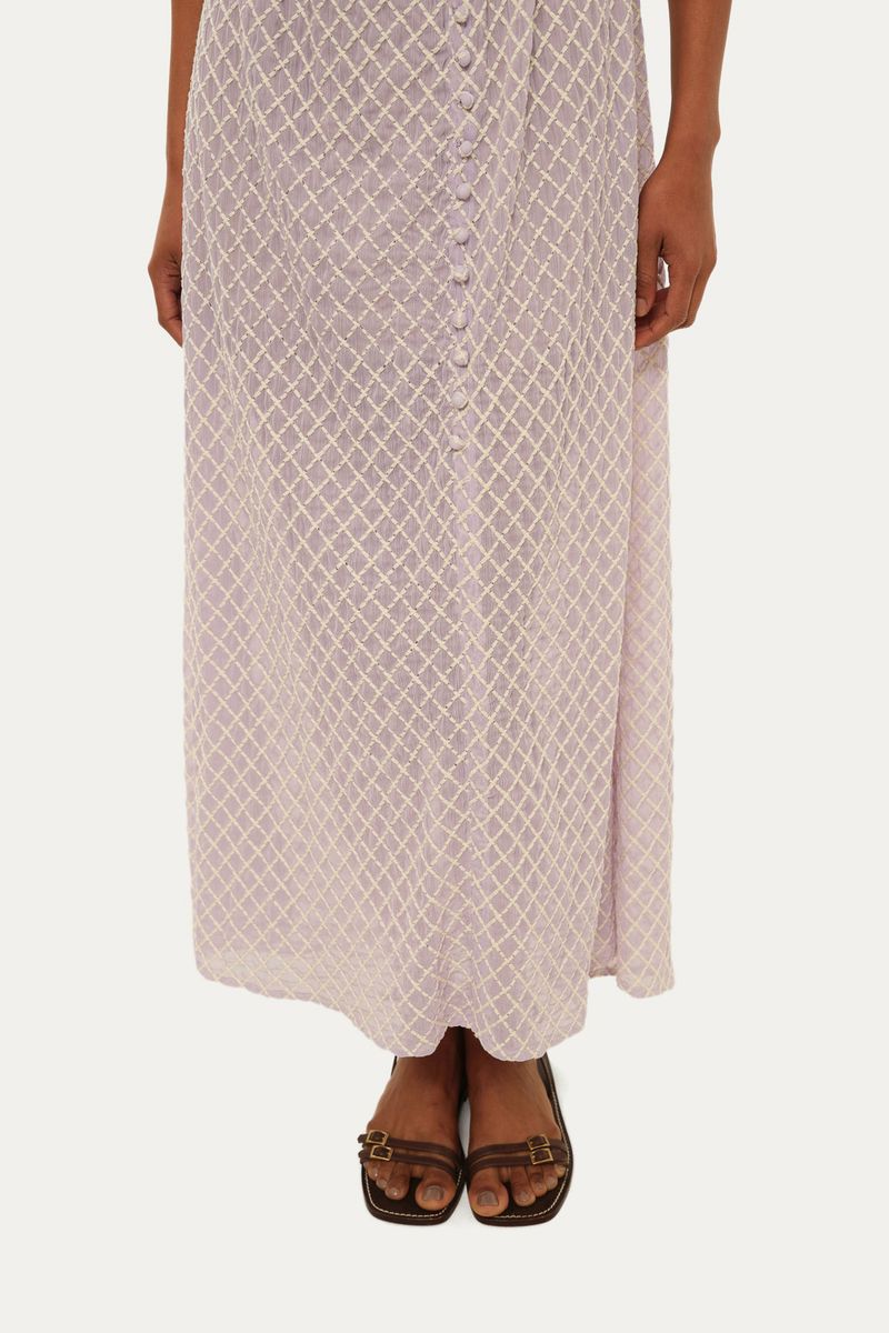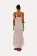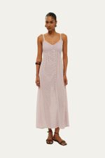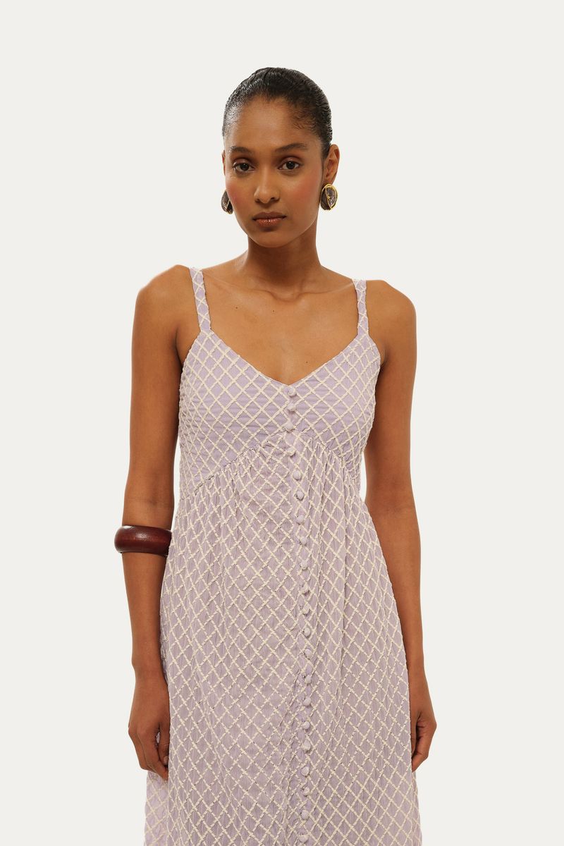 *Produto comercializado e enviado por Gaitee.Alça média. Decote em V. Detalhe de botões forrados na parte da frente. Lastex na parte traseira. Modelagem midi. Acompanha saia de malha