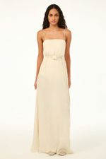 O vestido longo Cassia CRIS BARROS é elegante e atemporal. De Tunisia, tecido misto com toque leve, brilho e caimento perfeito. Possui shape reto, alças finas, body fixo interno e fendas laterais. Acompanha cordão com aviamento caracol, design exclusivo, desenvolvido em nosso atelier.