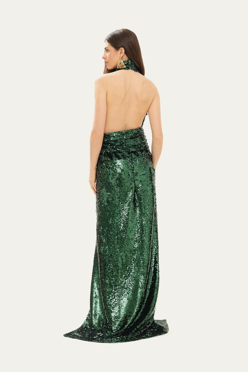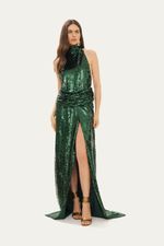 Este Vestido Longo Flame Chaouiche é uma criação distinta, elaborada em tecido Paête, que confere um brilho sutil e um caimento gracioso. Sua modelagem fluida e o comprimento alongado delineiam a silhueta com discrição, oferecendo um visual refinado e contemporâneo. O forro embutido assegura um conforto suave ao toque, ideal para momentos que demandam uma elegância particular.