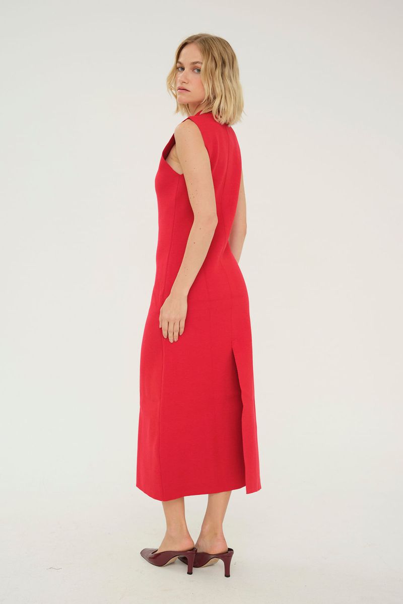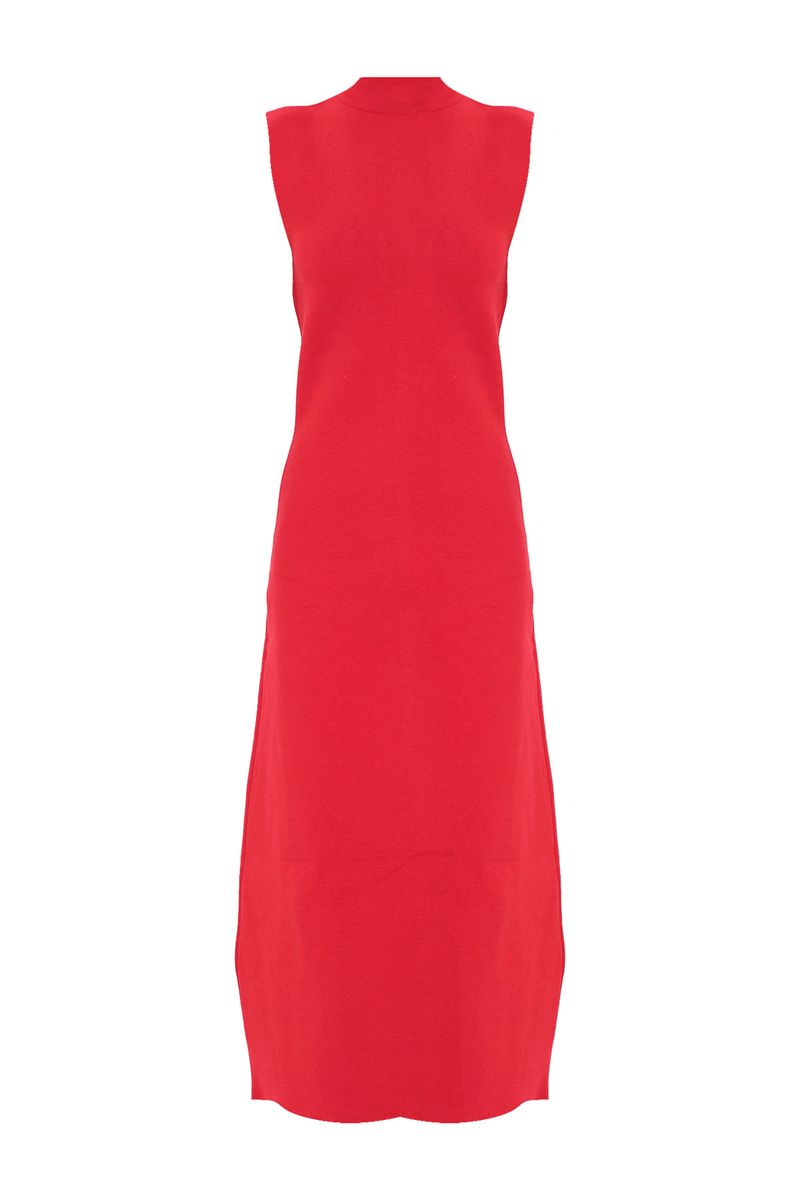 Vestido Longo Gola Alta Tricot Egrey - VERMELHO
