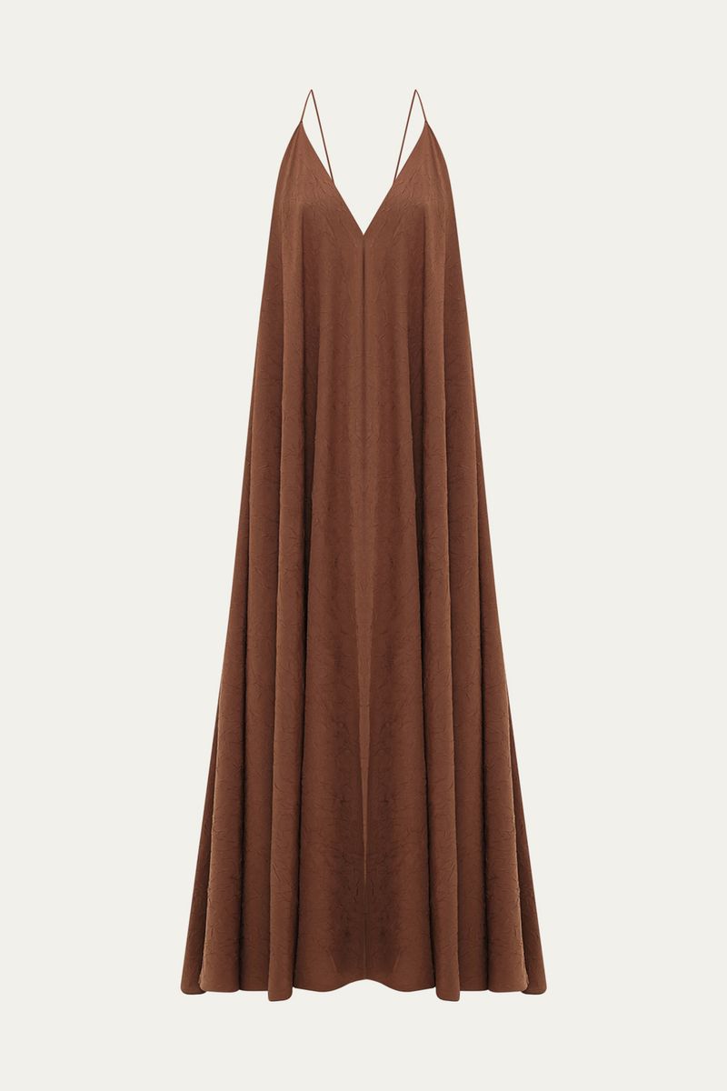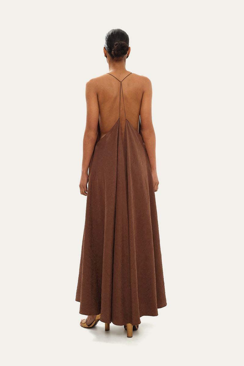 O Vestido Longo Kate André Lima desvela uma silhueta de fluidez sublime. O decote em V profundo, harmoniosamente complementado por alças finas, confere um toque de sofisticação discreta. Uma peça de caimento impecável, ideal para ocasiões que demandam uma presença refinada e memorável.