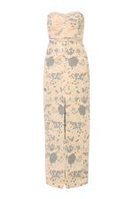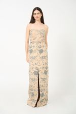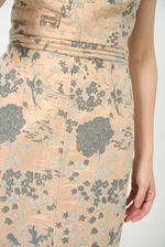Vestido longo em jacquard encorpado.