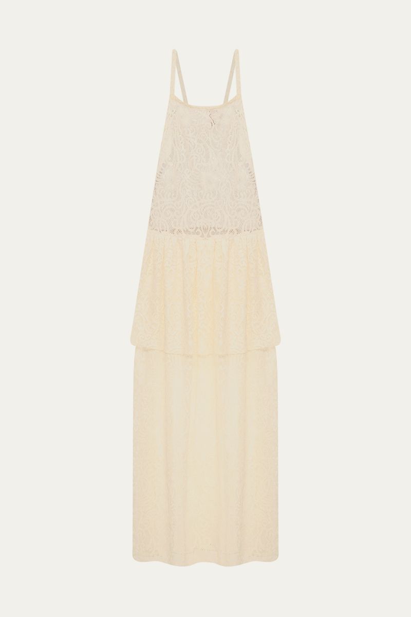O Vestido Lupita de All Most Vintage é uma peça deslumbrante, confeccionada em renda delicada. Com seu design longo e elegante, o decote reto valoriza o colo, enquanto as alças finas proporcionam leveza e sofisticação. Ideal para ocasiões especiais, este vestido garante um visual inesquecível e cheio de charme.