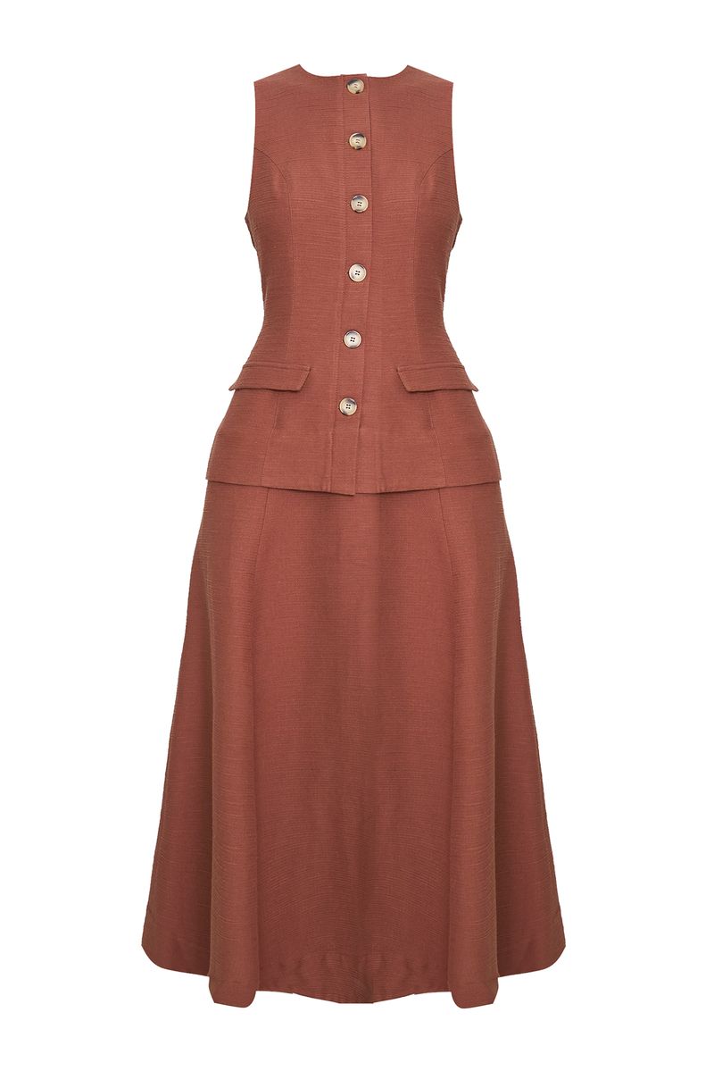 Vestido Midi Aruba Clemence - MARROM