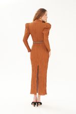 Vestido midi em anarruga de viscose.