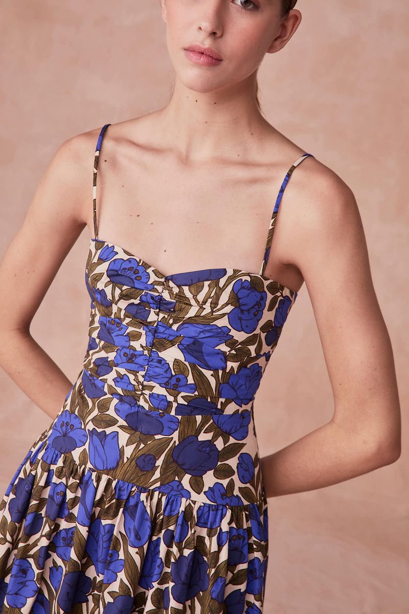 O Vestido Midi Cotton Jardim Paula Raia, uma criação exclusiva em algodão, apresenta um design sofisticado e leve. Com sua modelagem midi evasê e decote coração, realçado por recortes estratégicos e alças finas, a peça oferece um caimento impecável. A estampa exclusiva Paula Raia enriquece o visual, proporcionando um toque suave e conforto inigualável, ideal para quem busca elegância com um toque de arte.