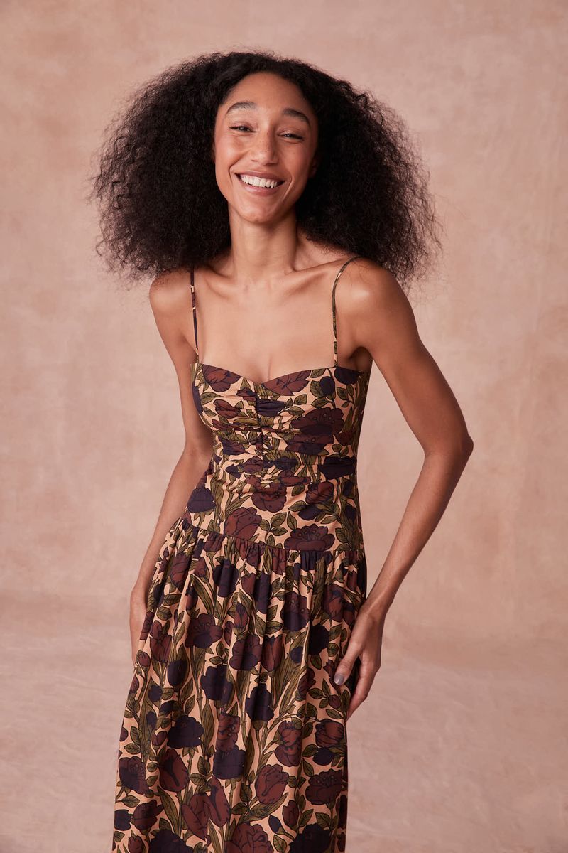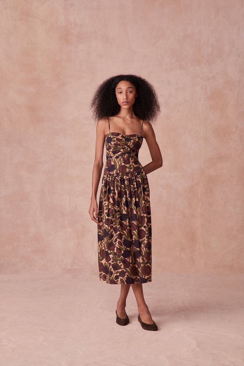 Vestido Midi Cotton Jardim Paula Raia - MARROM
