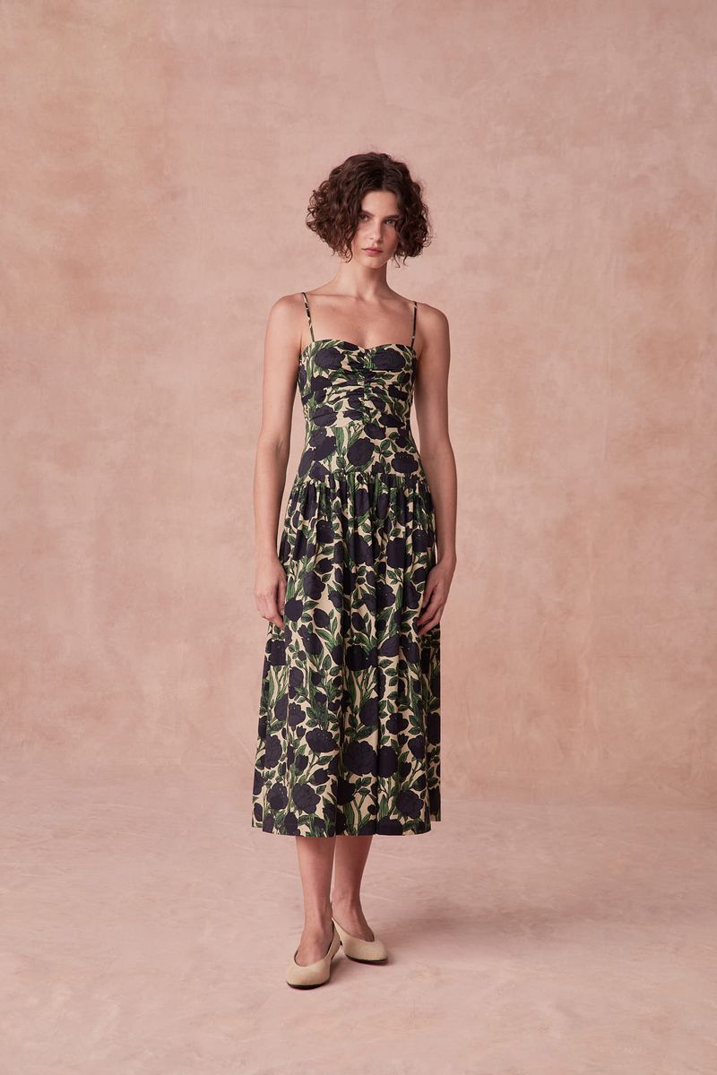 RoupasVestidosMidiVestido Midi Cotton Jardim Paula Raia - PRETO