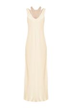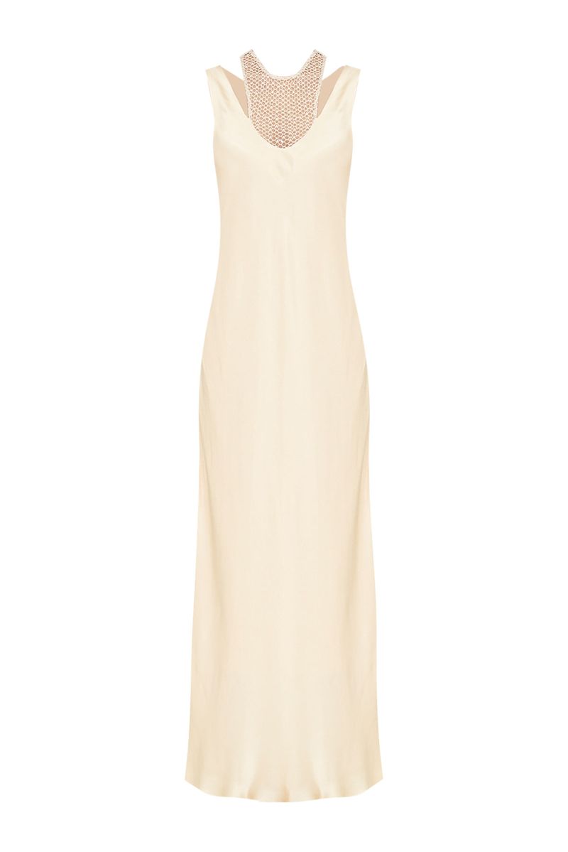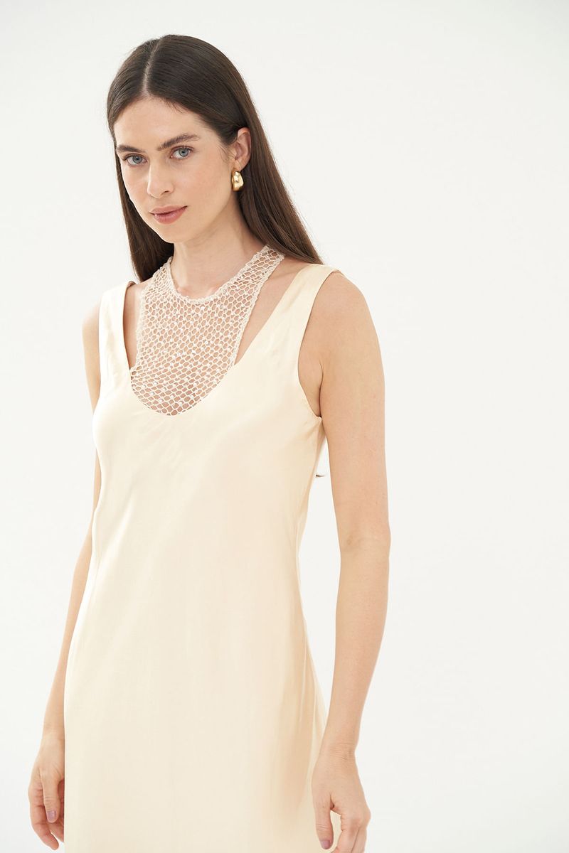 Vestido midi em cetim de viscose.