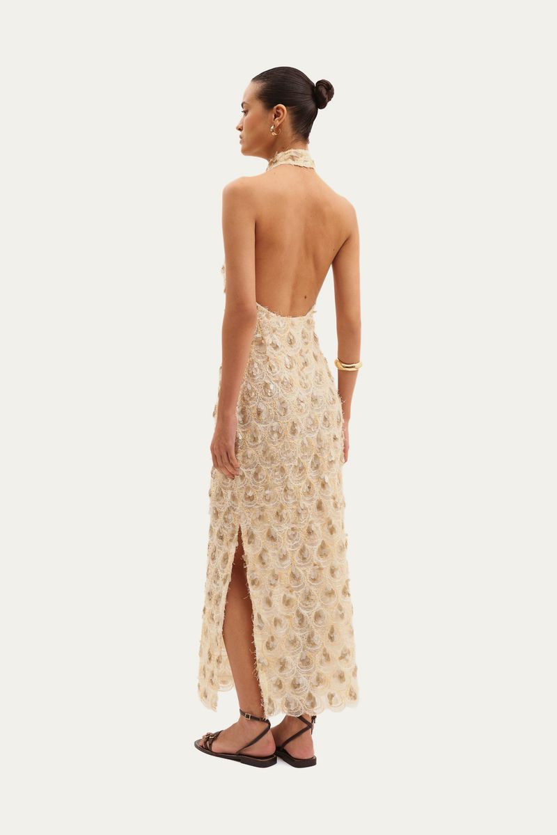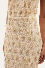 Este vestido midi exala uma sofisticação discreta, ideal para ocasiões que pedem um toque de refinamento. É sutilmente adornado com paetês delicados, conferindo um brilho suave e uma presença elegante.