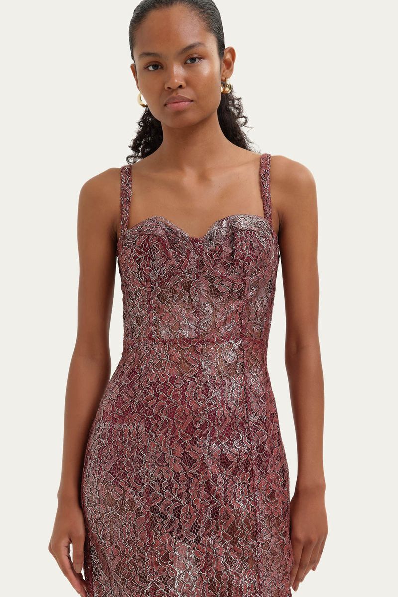 O Vestido Midi Jouer Framed, redefine a elegância com um design que sutilmente valoriza a silhueta. As delicadas alças em renda com foil e o busto estruturado, evocando a estética loungerie, conferem um toque de sofisticação discreta. Uma peça que convida à confiança em eventos especiais, realçando a beleza natural com uma presença marcante.