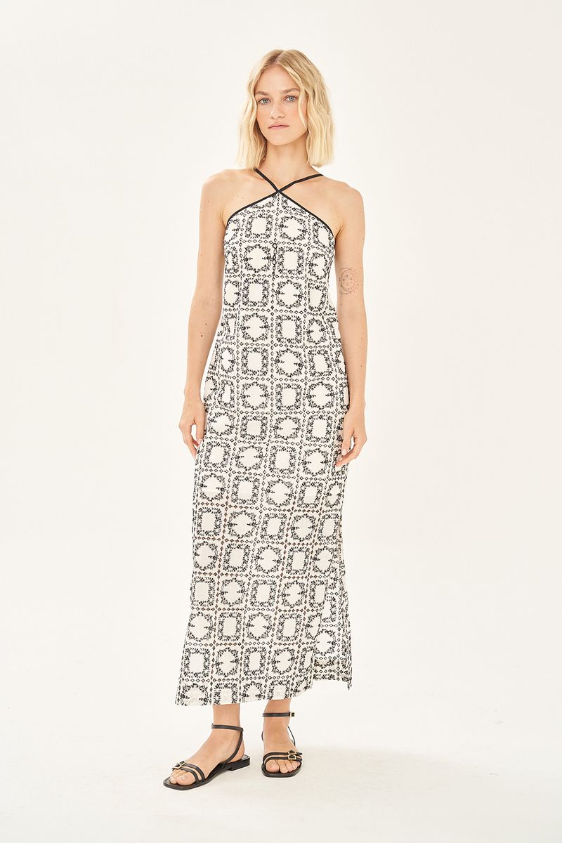 Vestido midi bordado em laise de algodão.