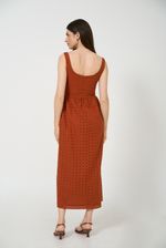 38 - Busto: 84 cm - Cintura: 72 cm - Comprimento: 134 cm.