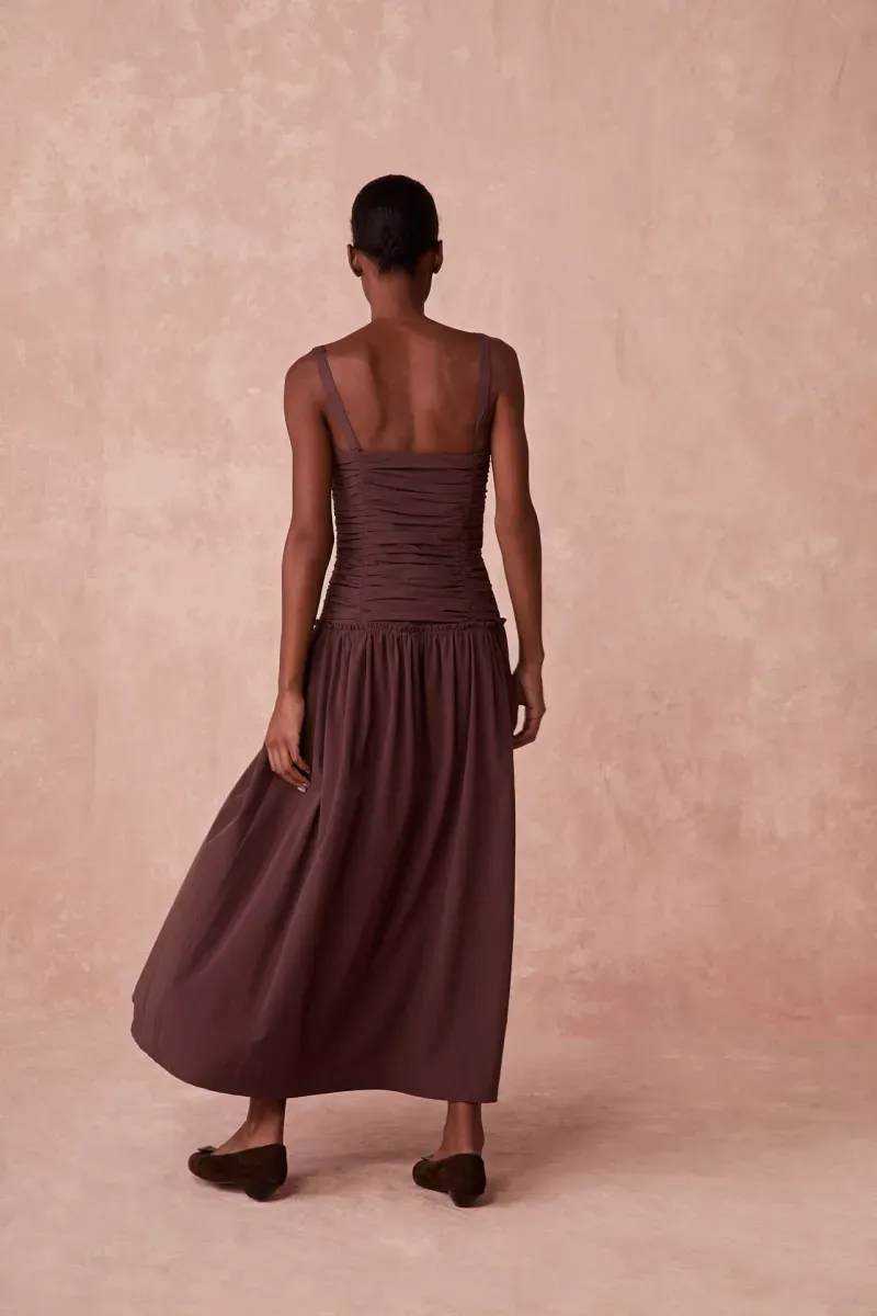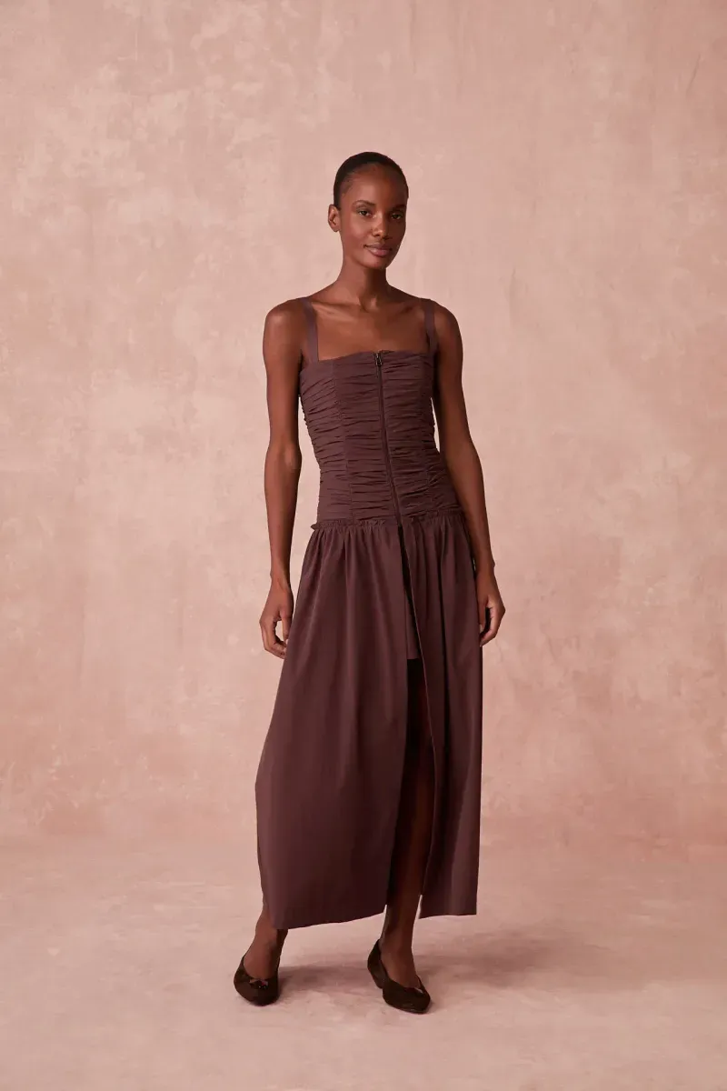 Vestido Midi Nylon Crema Paula Raia - MARROM