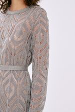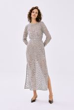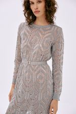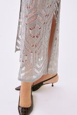 Vestido midi em renda de lurex.