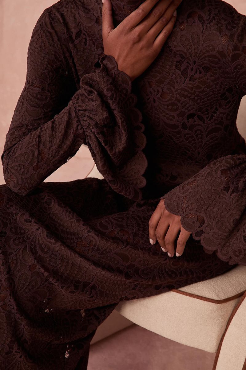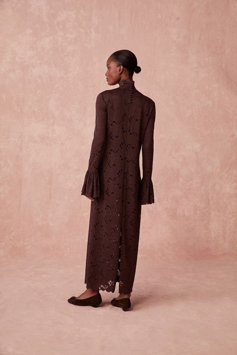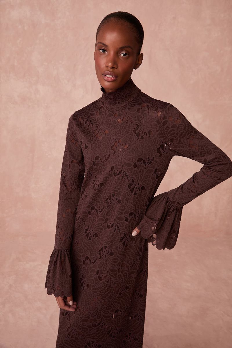 Vestido Midi Renda Marshmellow Paula Raia - MARROM