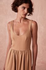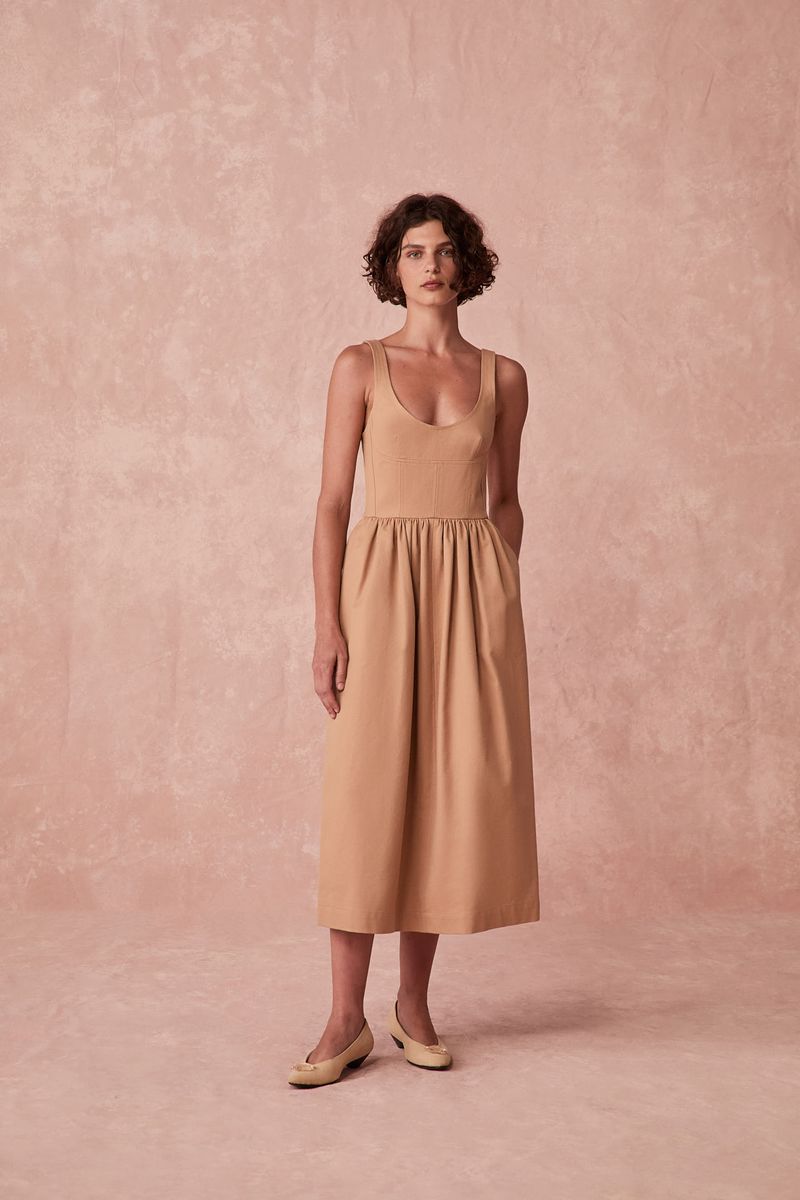 Vestido Midi Sarja Piquet Paula Raia - BEGE