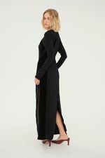 Vestido midi em crepe com veludo.