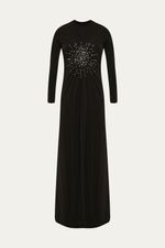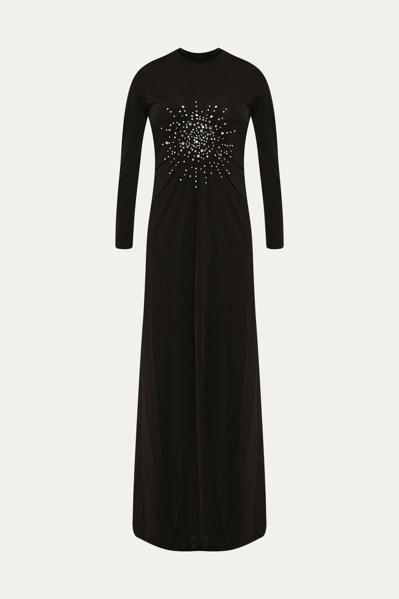 Desvende a sofisticação atemporal com o Vestido Millie, uma criação que celebra a elegância em sua forma mais pura. Confeccionado em malha para um caimento impecável e conforto duradouro, este design de modelagem reta apresenta um comprimento longo e mangas igualmente longas, culminando em uma gola alta. O detalhe central de franzidos, pontuado por delicados pontos de brilho, confere um toque sutil de exclusividade, enquanto o fechamento posterior em zíper invisível assegura um acabamento perfeito.