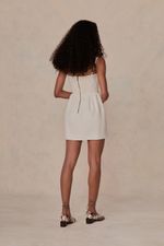 Confeccionado em sarja de algodão, este vestido revela um caimento refinado, delineado por uma modelagem reta e um shape sutilmente solto. O decote reto, desprovido de alças, é complementado por um posterior em lastex que assegura um ajuste delicado, enquanto as pences frontais adicionam um toque de sofisticação discreta. Acompanhado de um top com alças, esta peça versátil promete conforto e um estilo singular para diversas ocasiões.