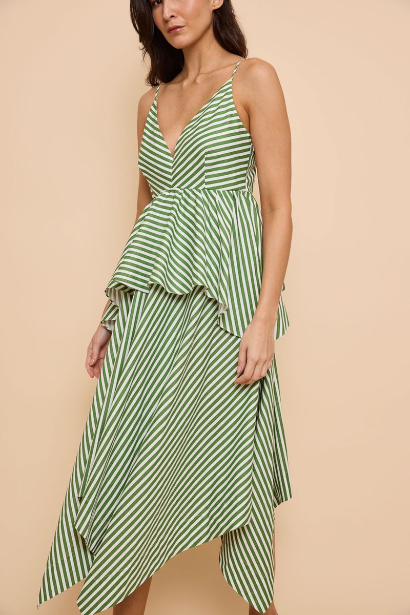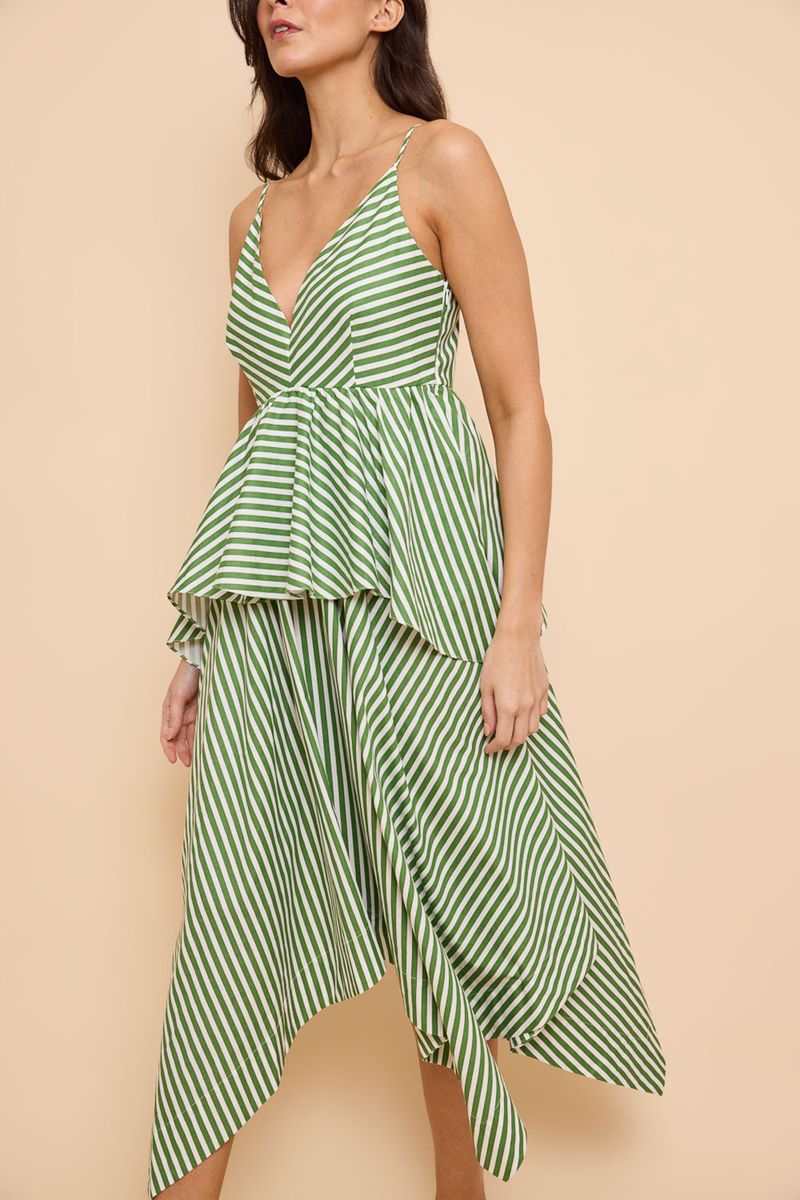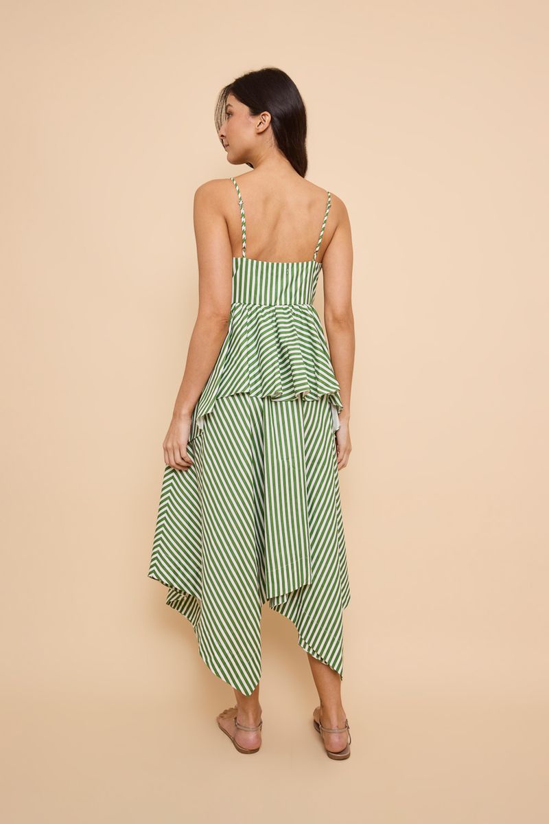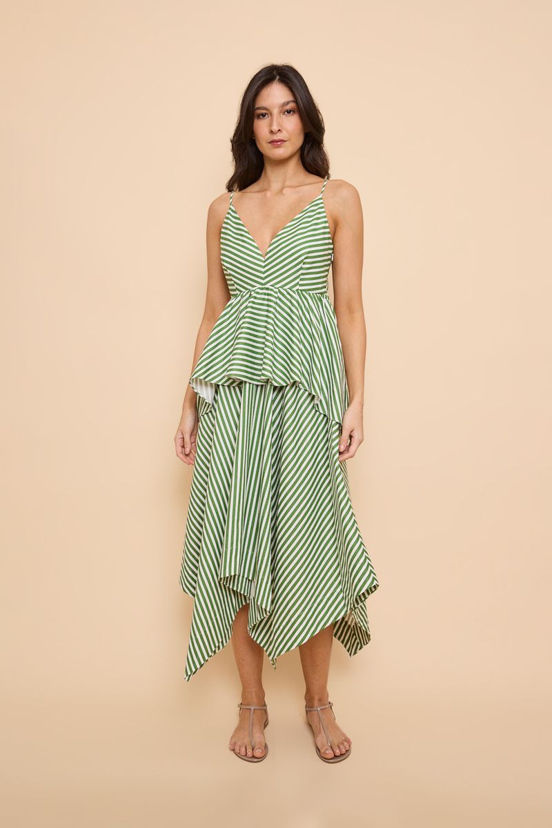 Vestido Pontas Veronica Listrado Off-White/Verde New Olive You - MULTICOLORIDO