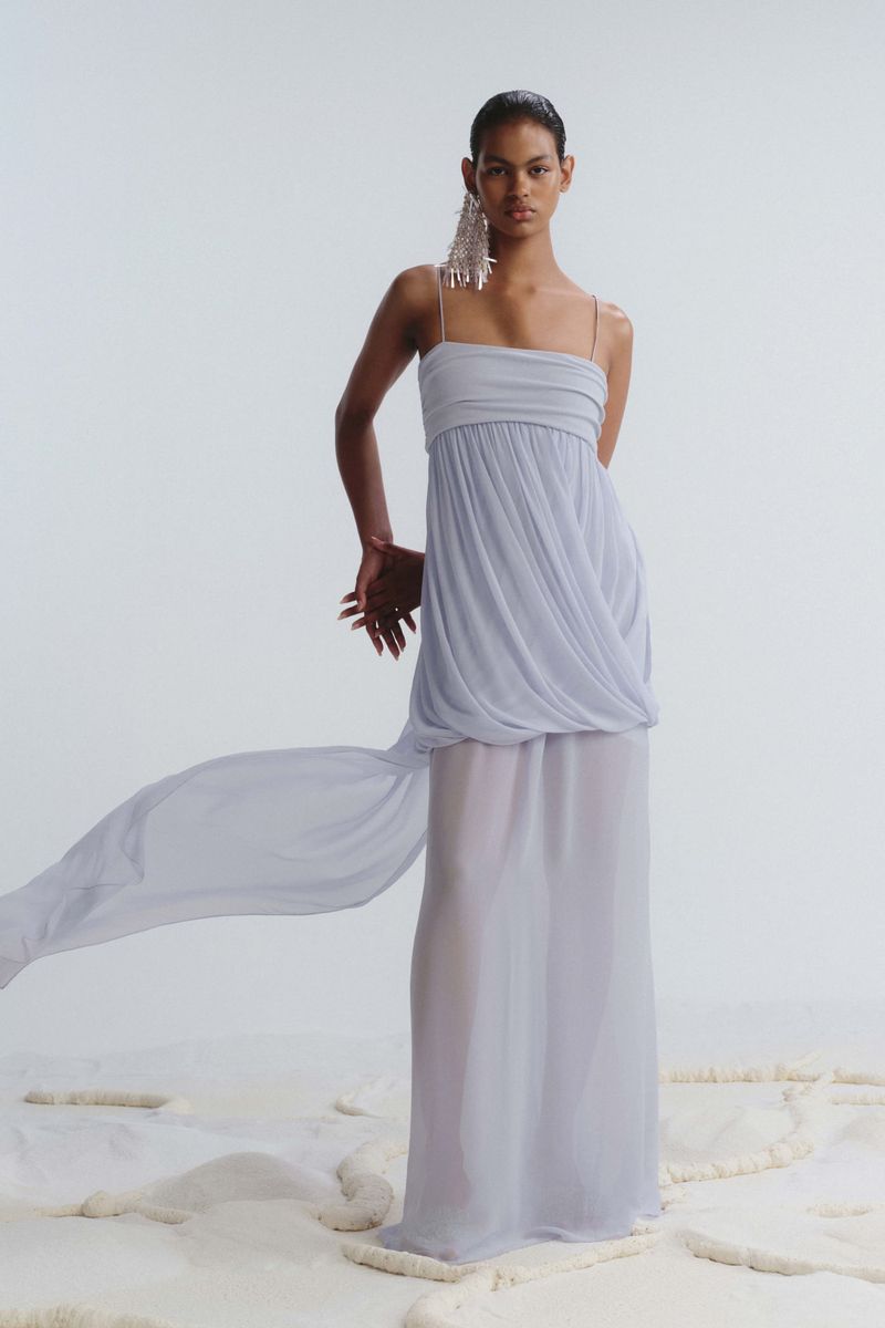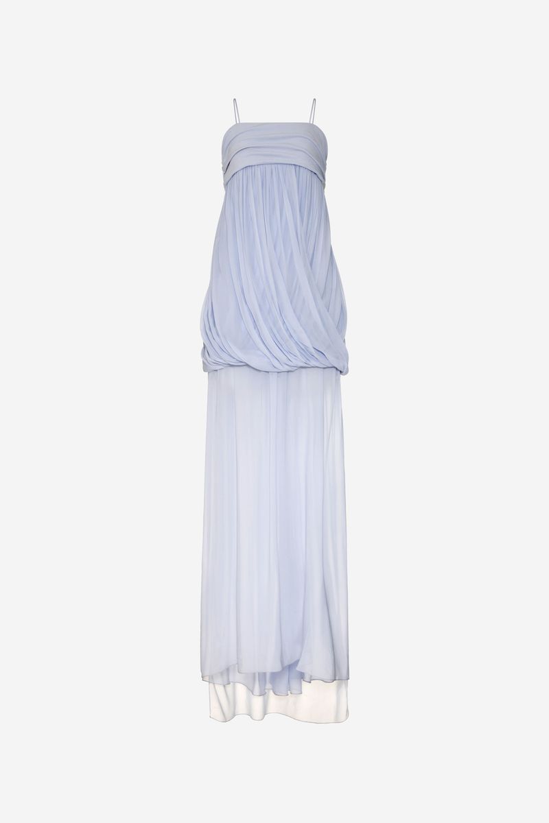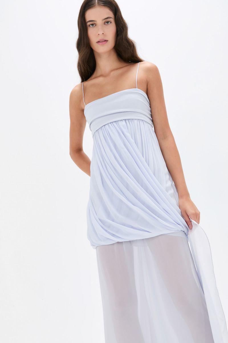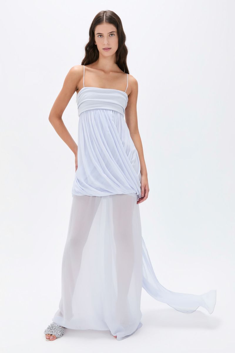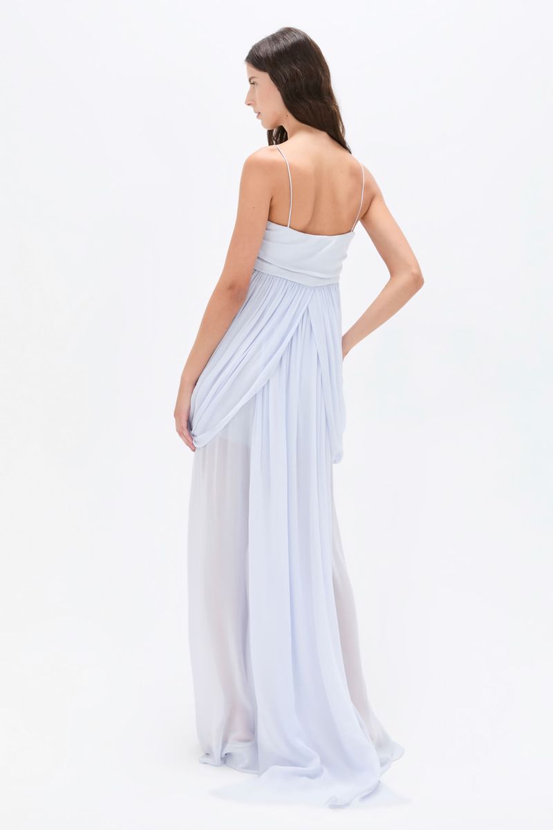 O vestido Priscilla longo CRIS BARROS é fluido e delicado. De Guilhermina, nosso georgete leve e fluido, com toque creponado. Possui decote reto, alças finas, recorte abaixo do busto, caimento drapeado transpasado degagê, abertura na barra posterior, comprimento curto e sobreposição de saia longa transparente.