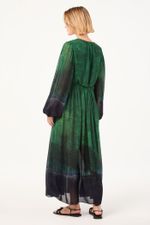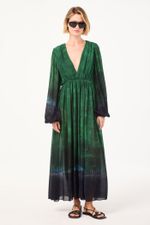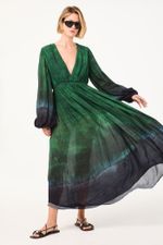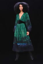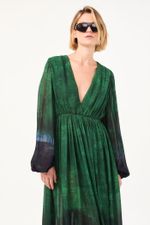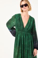 O vestido Regina CRIS BARROS é cool e artsy. De Virgo, nossa viscose creponada, fluida e com leve transparência com estampa localizada exclusiva Meditação, desenvolvida em nosso atelier. Possui decote V, mangas longas, cintura marcada e saia longuete evasê com calcinha de body interna fixa.