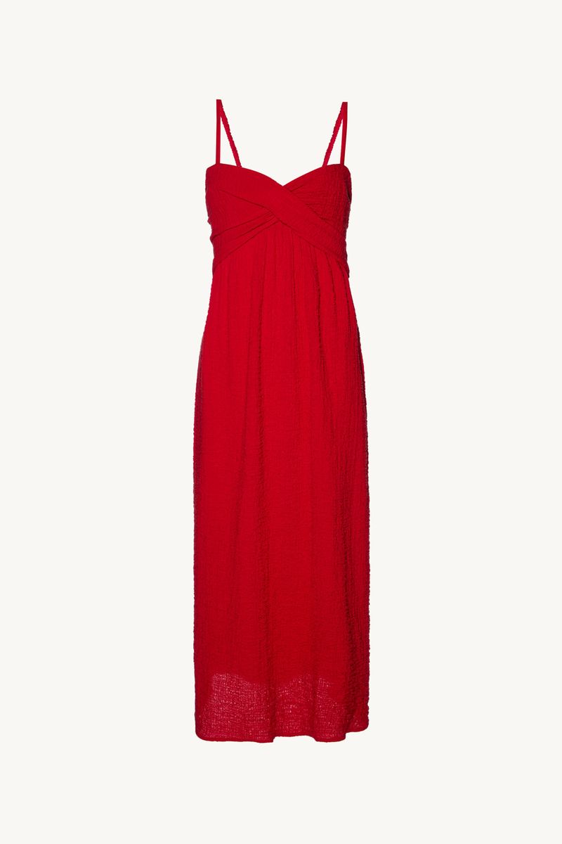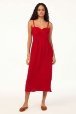 O vestido Santiago CRIS BARROS é chique e easy. De Santiago, tecido de algodão com textura única e diferenciada. Possui decote levemente coração, busto transpassado e saia midi evasê.