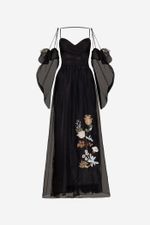 O vestido Saraphina CRIS BARROS é moderno e romântico. De Organza de seda, nossa seda pura, com leve transparência, toque macio e fluido, que garante um charme extra para peças elegantes e com bordado colorido, que traz diversas flores, exclusivo desenvolvido em nosso atelier. Os corantes responsáveis por seu tingimento possuíem certificação OEKO-TEX ® Standard 100.vestido de tecido organza bordado. Possui decote coração, busto transpassado e franzido, alças finas, cintura marcada, saia longa rodada, com saia interna de renda. Acompanha luvas, anágua e hot pants.