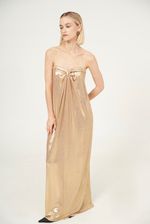 Vestido metalizado de festa longo.
