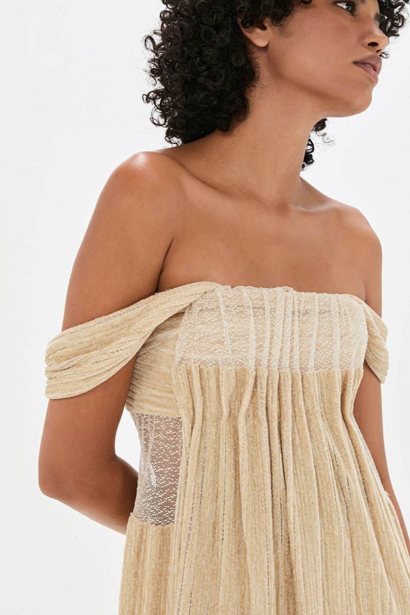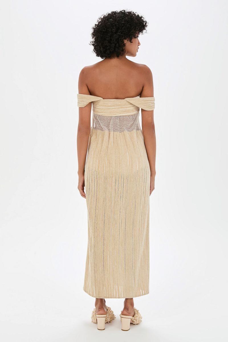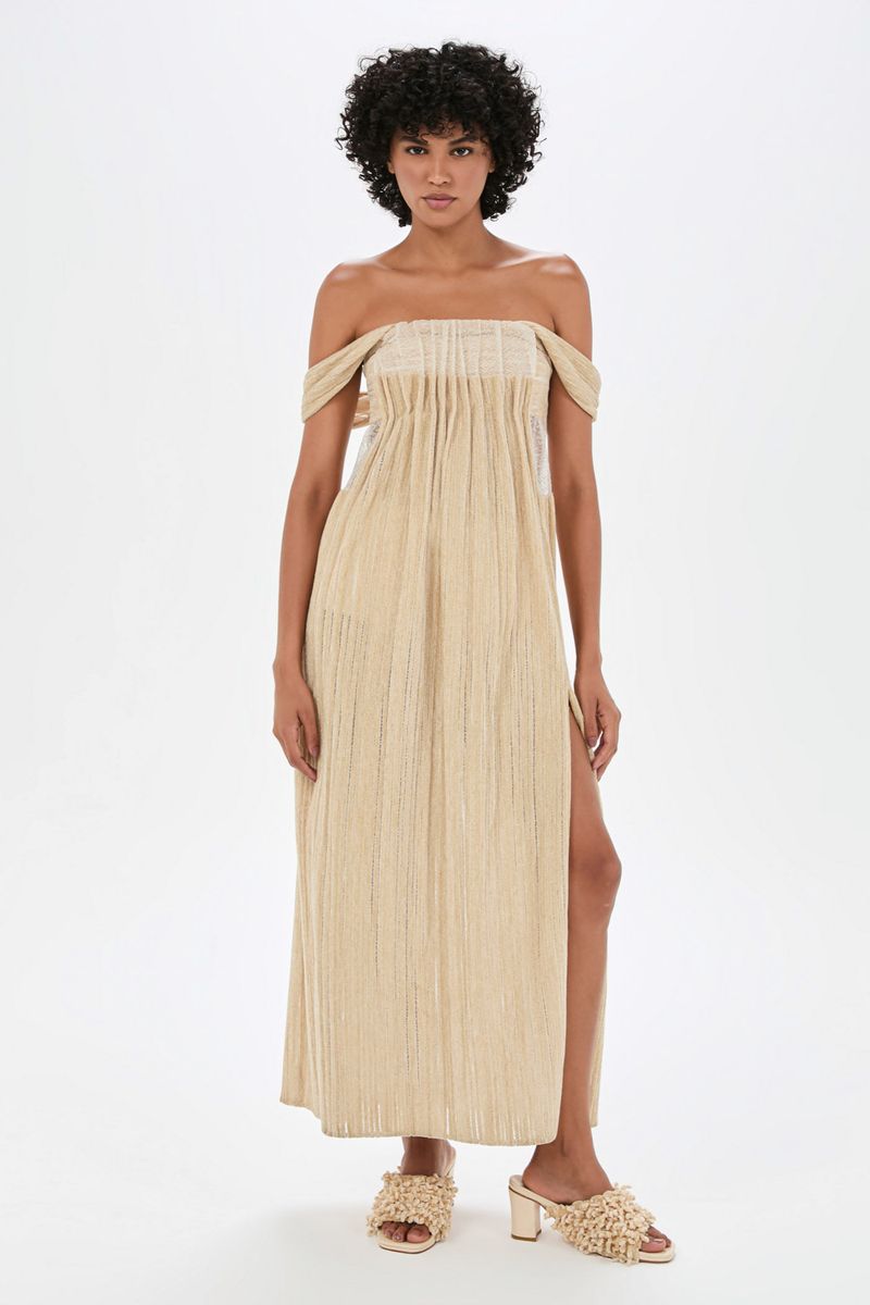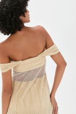 O vestido Valerie CRIS BARROS é chique e atemporal. De Prelúdio, tule coberto por listras feitas com fio de lã chenille que criam efeito cotelê. Possui shape reto, decote reto e franzido, alças largas, duas fendas frontais, recortes com transparência na região da cintura, comprimento midi e fechamento por zíper invisível lateral. Acompanha hot pants. Dica de styling: Use com as alças caídas, com decote ombro a ombro.