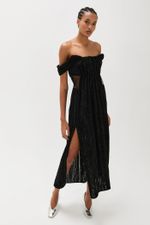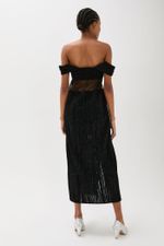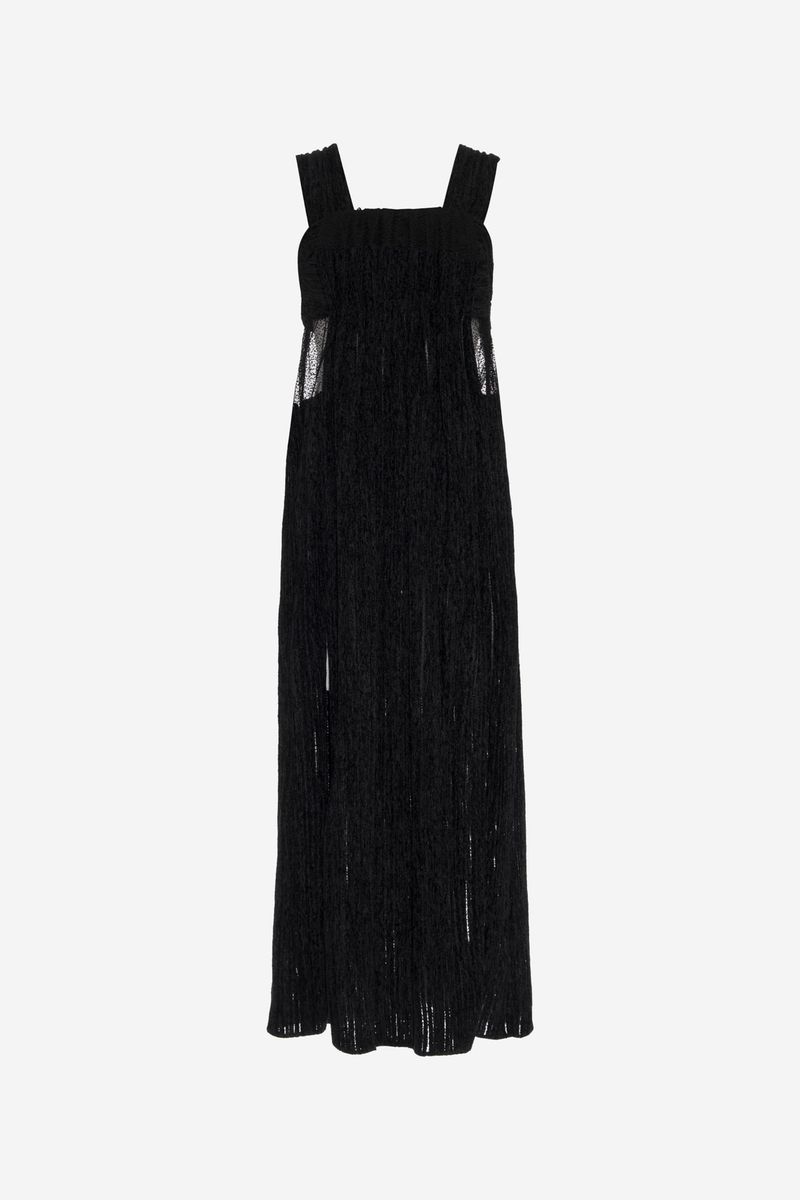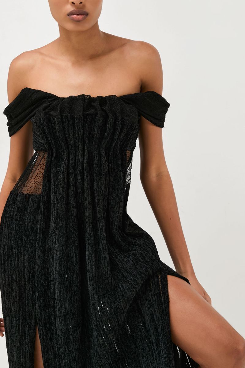 O vestido Valerie CRIS BARROS é chique e atemporal. De Prelúdio, tule coberto por listras feitas com fio de lã chenille que criam efeito cotelê. Possui shape reto, decote reto e franzido, alças largas, duas fendas frontais, recortes com transparência na região da cintura, comprimento midi e fechamento por zíper invisível lateral. Acompanha hot pants. Dica de styling: Use com as alças caídas, com decote ombro a ombro.