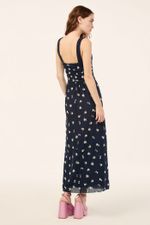 O vestido Victoria CRIS BARROS é estiloso e delicado. De Bosque, voil 100% algodão, bordado com mini flores de textura atoalhada. Possui shape justo, alças largas, decote U, corpo franzido até a região da cintura, detalhe central de Marjorelle e saia midi evasê.